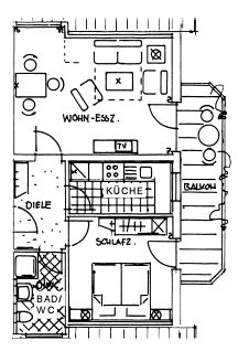 2-Zimmer-Wohnung: 1 Wohnraum und 1 Schlafraum Etage: Obergeschoss Unterkunft mit Balkon BD/WC Küche Wohnzimmer Nichtraucher-Zimmer Backofen Besteck, Geschirr Bettwäsche Fernseher im Zimmer Geschirrhandtücher Geschirrspülmaschine Handtücher Kaffeemaschine Kochgeschirr Kühlschrank Mikrowelle Safe Telefon Wäschetrockner Waschmaschine