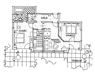 3-Zimmer-Wohnung: 1 Wohnraum und 2 Schlafräume Etage: Erdgeschoss Unterkunft mit Terrasse BD/WC Küche Wohnzimmer Nichtraucher-Zimmer Backofen Besteck, Geschirr Bettwäsche Fernseher im Zimmer Geschirrhandtücher Geschirrspülmaschine Handtücher Kaffeemaschine Kochgeschirr Kühlschrank Mikrowelle Safe Telefon Wäschetrockner Waschmaschine