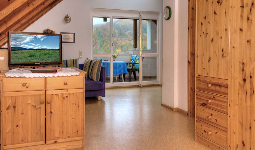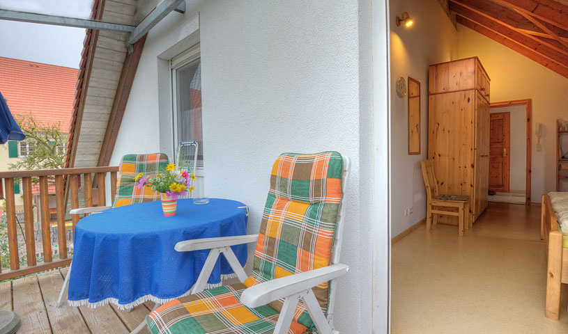 Etage: Dachgeschoss Unterkunft mit Balkon DU/WC Wohn- und Esszimmer mit Küche Einrichtungen für Kinder Kinderbett Kinderhochstuhl Nichtraucher-Zimmer Besteck, Geschirr Bettwäsche Fernseher im Zimmer Kaffeemaschine Radio Rauchmelder Waschmaschine