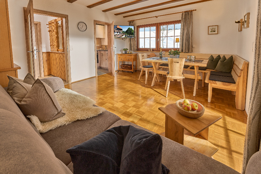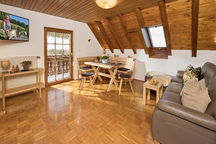 4-Zimmer-Wohnung: 1 Wohnraum und 3 Schlafräume Etage: Dachgeschoss Unterkunft mit Balkon BD/DU/WC Küche: Einbauküche Schlafzimmer Wohn- und Esszimmer Einrichtungen für Kinder Babybett Kinderbett Kinderhochstuhl Allergikerfreundlich Nichtraucher-Zimmer Backofen Besteck, Geschirr Bettwäsche Fernseher im Zimmer Geschirrhandtücher Geschirrspülmaschine Handmixer Handtücher Kachelofen Kaffeemaschine Kochgeschirr Kühlschrank mit Gefrierfach Mikrowelle Radiowecker Sitzecke Telefon Toaster Wasserkocher Zustellbett