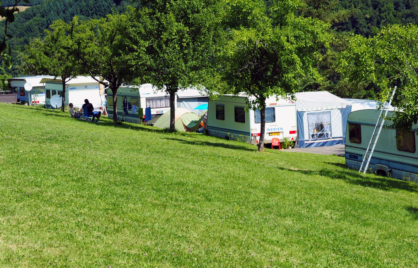 Genießen Sie Ihre Urlaubstage auf dem schönen Terrassencampingplatz mit altem Obstbaumbestand und mit herrlichem Blick über Berge und Wiesen. Stellplätze, Mobilheime, Schwarzwaldzelt oder Wanderhütte - Sie haben die Wahl.