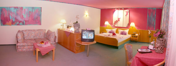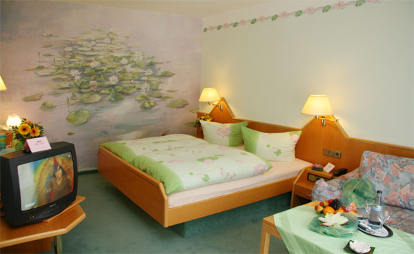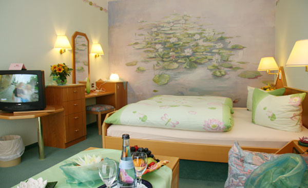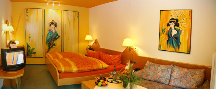 Sinnvoll, Ihren Aufenthalt in herrlicher Lage, direkt am Kurpark und fast vor der Vita Classica in unserem ganz besonderen Hotel zu verbringen. Sinnvoll, dies dürfen Sie wortwörtlich nehmen, Ihr Zimmer ist einer Blume zugeordnet, der entsprechende Duft wird von einem Alabasterstein gespeist, der von einem Künstler farblich abgestimmte Raum weckt ein harmonisches Gefühl :: Lassen Sie sich überraschen. Und zur Begrüßung erhält jeder Gast einen Willkommens-Blüten-Cocktail! // Ein besonderer Service für unsere Gäste: Spezielle Duft- und Blumentees werden auf den Zimmern mit Wasserkocher angeboten: Rosenblütentee, Jasmintee, Lotosblütentee, Veilchentee, Osmanthustee, Orchideentee, Magnolienblütentee. // Wir freuen uns auf Sie! /// Nadine & Thomas Huber