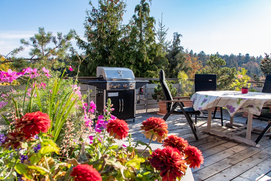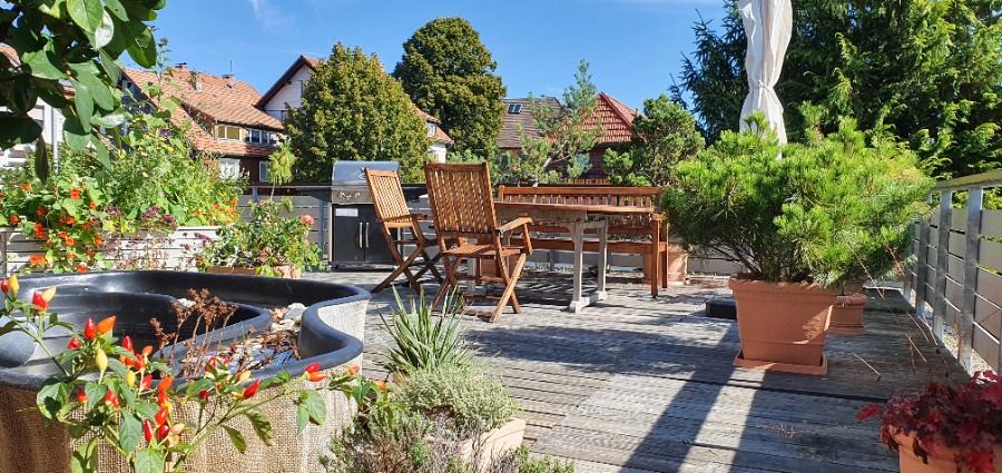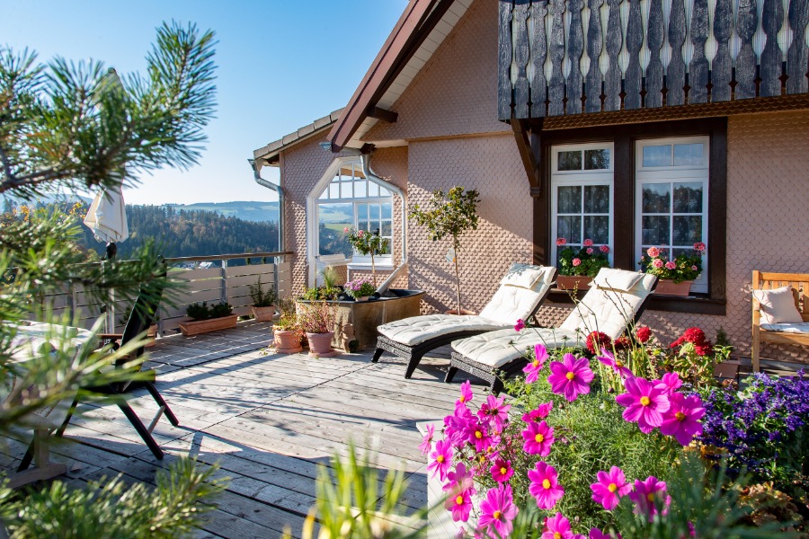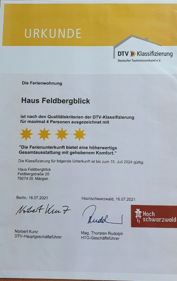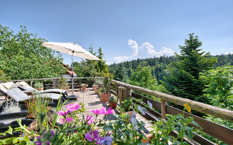 Die Komfort-Ferienwohnung »Feldbergblick« liegt im Luftkurort St. Märgen mitten im südlichen Schwarzwald. Von der nach Süden ausgerichteten sonnigen Loggia haben Sie einen wundervollen Panoramablick über die grün bewaldeten Höhen bis hinauf auf den Feldberg. Die Wohnung ist ca. 100 qm groß, dazu gehört eine etwa 90 qm große sonnige Terrasse mit Gasgrill, sowie eine Garage. Sie liegt im ersten Geschoss eines ehemaligen Schwarzwald-Hotels, und strahlt den Charme eines Hauses aus der Jahrhundertwende aus - zugleich bietet Ihnen die Wohnung durch ihre geschmackvolle Einrichtung nahezu allen Komfort, den Sie sich wünschen. -Traumterrassenobjekt-