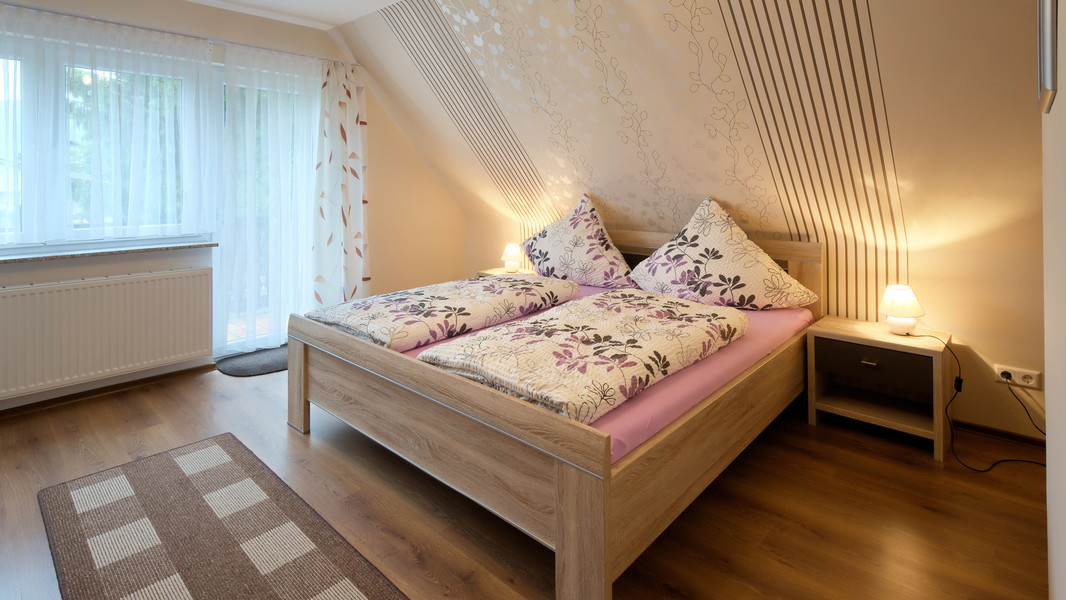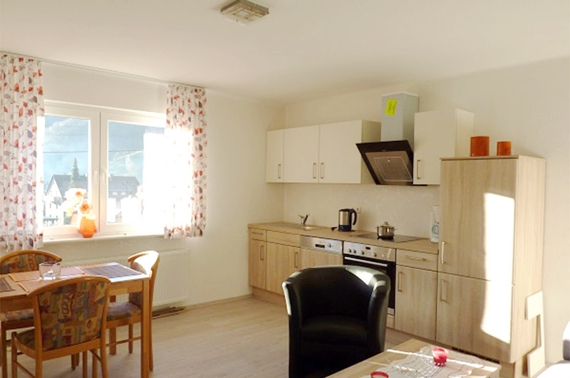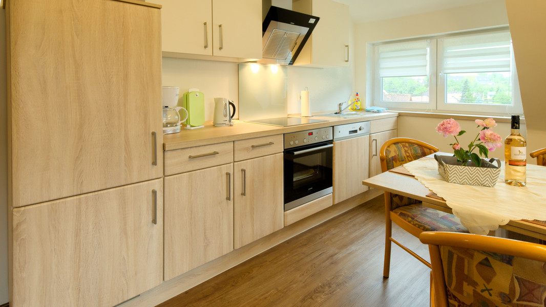 3-Zimmer-Wohnung: 1 Wohnraum und 2 Schlafräume Etage: Obergeschoss Unterkunft mit Balkon DU/WC Küche Schlafzimmer Wohnküche Wohnzimmer Nichtraucher-Zimmer Backofen Besteck, Geschirr Bettwäsche Elektroherd Fernseher im Zimmer Geschirrspülmaschine Handtücher Kaffeemaschine Kochgeschirr Kühlschrank mit Gefrierfach Wasserkocher