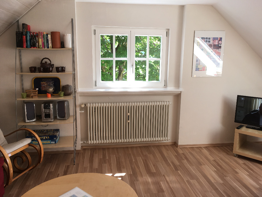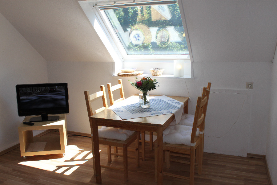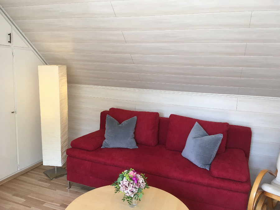 2-Zimmer-Wohnung: 1 Wohnraum und 1 Schlafraum Etage: Dachgeschoss DU/WC Küche Schlafzimmer Wohn- und Esszimmer Einrichtungen für Kinder Allergikerfreundlich (bedingt) Nichtraucher-Zimmer Backofen Besteck, Geschirr Bettwäsche Elektroherd Fernseher im Zimmer Geschirrhandtücher Handtücher Internet Highspeed Kaffeemaschine Kochgeschirr Kühlschrank Mikrowelle Radio Schlafcouch