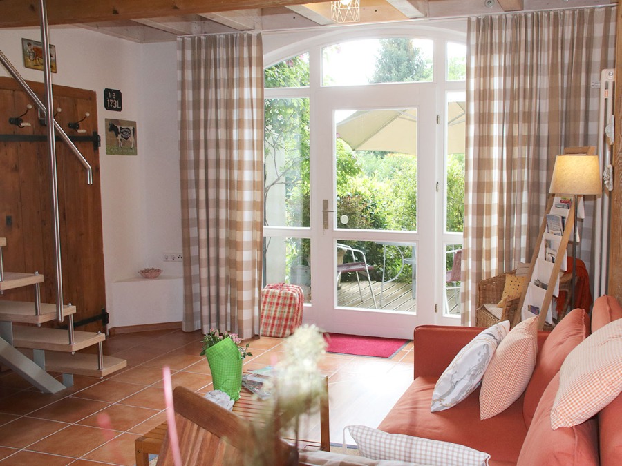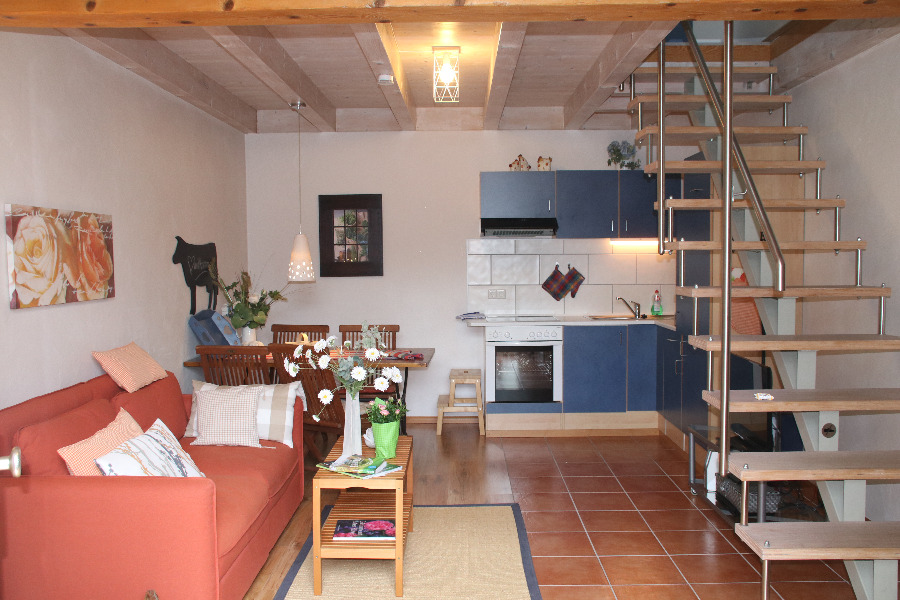 2-Zimmer-Wohnung: 1 Wohnraum und 1 Schlafraum Maisonette Unterkunft mit Terrasse DU/WC Fußboden Stein/Fließen Küchenzeile Schlafzimmer Wohn- und Esszimmer mit Küche Nichtraucher-Zimmer Backofen Bademantel Besteck, Geschirr Bettwäsche Bügelbrett Bügeleisen Doppelbett Dunstabzugshaube DVD-Player Eierkocher Fernseher im Zimmer Geschirrhandtücher Gesellschaftsspiele Haartrockner Handtücher Herd mit Kochfeld Internet Kaffeemaschine Kleiderschrank Kochgeschirr Kühlschrank Nachttisch Rauchmelder Schreibtisch Tischwäsche Toaster Wasserkocher