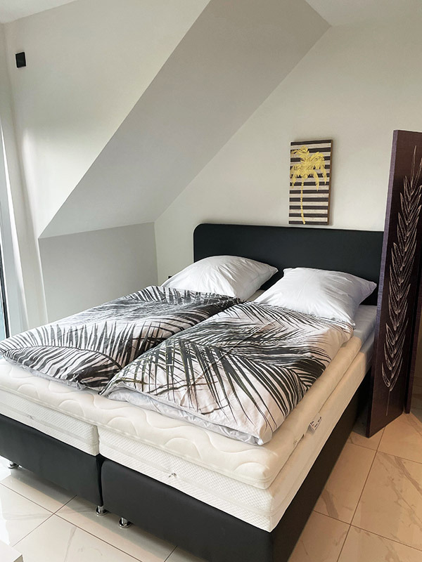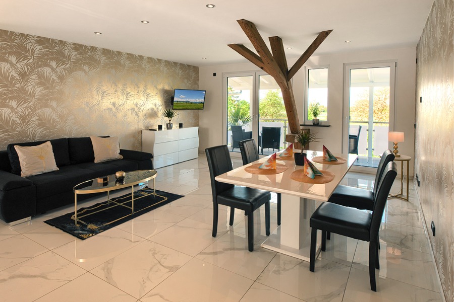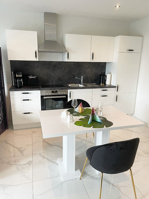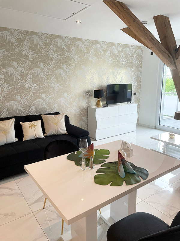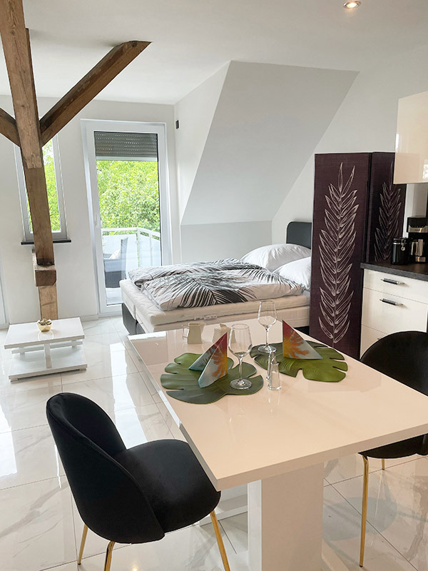 Bei uns können Sie Urlaub unter Palmen machen, ohne dass Sie in die Ferne schweifen müssen. Die drei Wohnungen befinden sich in einem Neubau und sind mit allem Komfort ausgestattet, den Sie sich in Ihrem wohlverdienten Urlaub wünschen. Vom Balkon oder der Terrasse aus haben Sie einen herrlichen Blick in unseren Palmengarten, der mit viel Liebe angelegt wurde. Wenn Sie abends bei einem guten Glas regionalen Wein den Blick in Richtung Sonnenuntergang und Vogesen schweifen lassen, dann wissen Sie: so fühlt sich Urlaub an. Wir freuen uns darauf, Sie bald bei uns begrüßen zu dürfen. Ihre Familie Worszeck