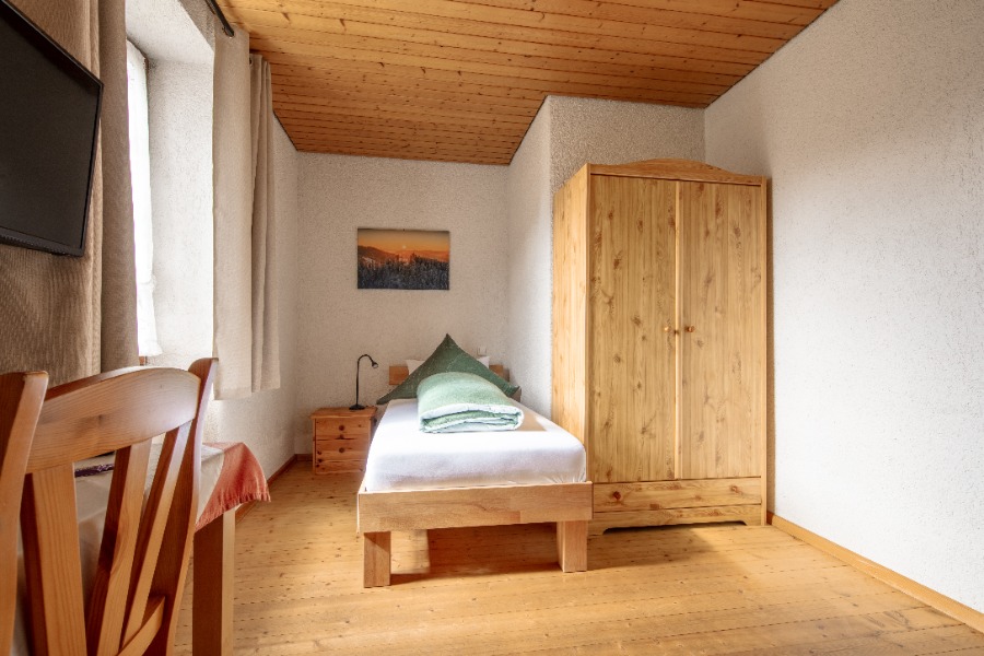 1-Zimmer-Wohnung: Wohnraum und Schlafraum in einem DU/WC Babybett Nichtraucher-Zimmer Bettwäsche Fernseher im Zimmer Handtücher Telefon Wasserkocher