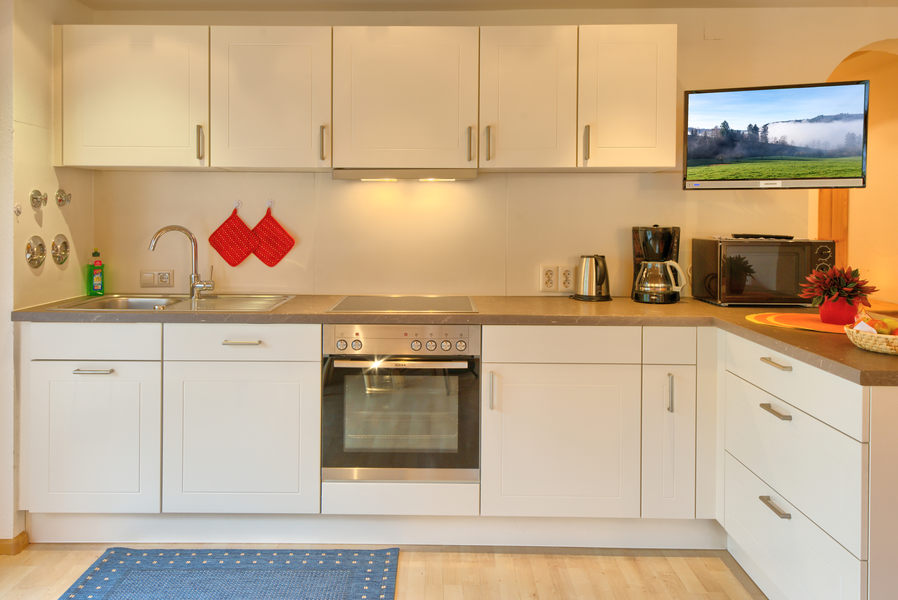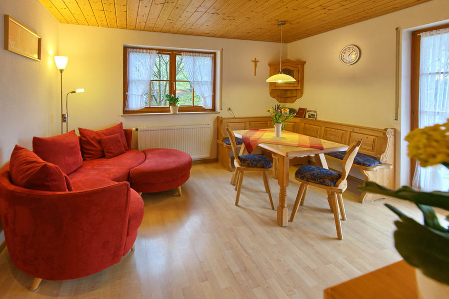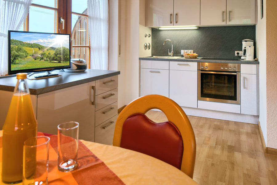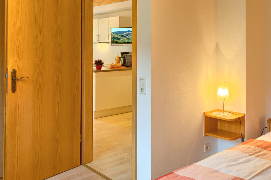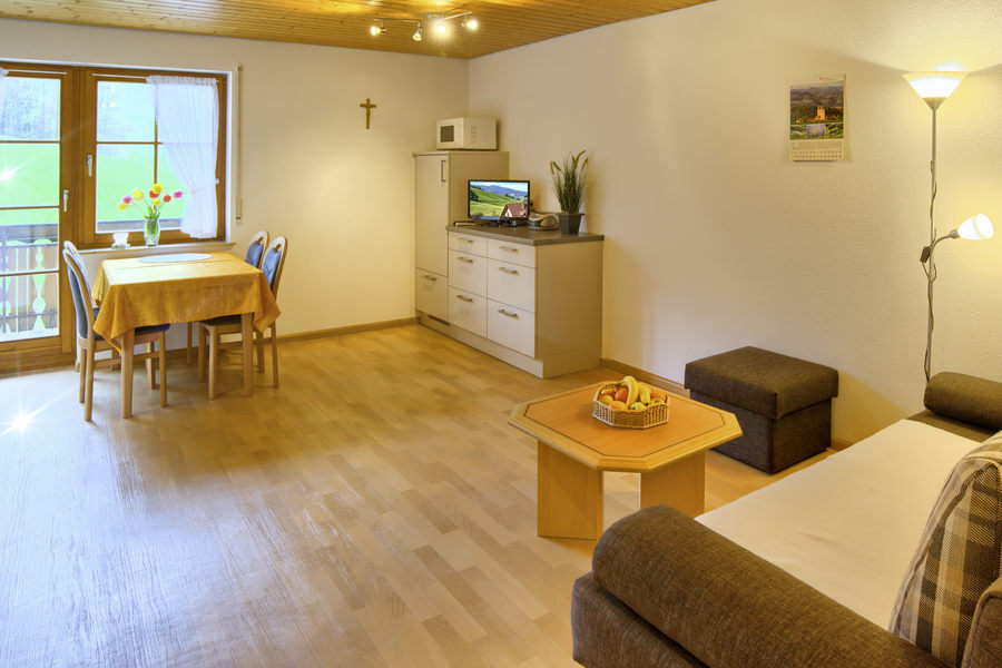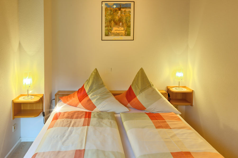 2-Zimmer-Wohnung: 1 Wohnraum und 1 Schlafraum Etage: Erdgeschoss Unterkunft mit Balkon DU/WC Küche Schlafzimmer Einrichtungen für Kinder Nichtraucher-Zimmer Besteck, Geschirr Bettwäsche Doppelbett Fernseher im Zimmer Geschirrhandtücher Gesellschaftsspiele Handtücher Kaffeemaschine Kochgeschirr Kühlschrank Mikrowelle Schlafcouch Sitzecke Teekocher Tischwäsche Wasserkocher