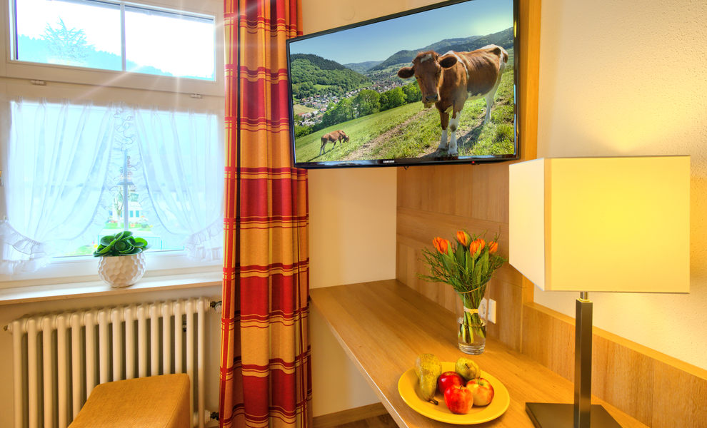 Es erwarten Sie komfortable Gästezimmer im Zentrum Münstertals, teilweise mit Balkon, und dem herrlichen Blick zum Hausberg "Belchen" (1415m). Alle Zimmer sind ausgestattet mit Dusche/WC, Radio und Sat-TV. Im Winter 2004/2005 wurden einige Zimmer umgebaut. Unsere neuen Zimmer (Kategorie A) und Appartements bieten Ihnen noch mehr Komfort und das Gefühl, als Gast König zu sein.