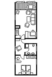 Etage: Erdgeschoss Unterkunft mit Terrasse DU/WC Küche: Einbauküche Schlafzimmer Wohnzimmer Nichtraucher-Zimmer Backofen Besteck, Geschirr Bettwäsche Fernseher im Zimmer Geschirrspülmaschine Haartrockner Handtücher Kaffeemaschine Kleiderschrank Kühlschrank Radio Schlafcouch Sitzecke