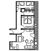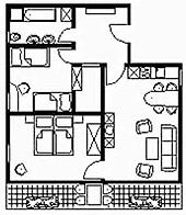 3-Zimmer-Wohnung: 1 Wohnraum und 2 Schlafräume Etage: Erdgeschoss Unterkunft mit Balkon oder Terrasse BD/DU/WC Küche: Einbauküche Schlafzimmer Wohnzimmer Nichtraucher-Zimmer Backofen Besteck, Geschirr Bettwäsche Fernseher im Zimmer Haartrockner Handtücher Kaffeemaschine Kleiderschrank Kühlschrank Radio Schlafcouch Sitzecke