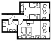 3-Zimmer-Wohnung: 1 Wohnraum und 2 Schlafräume Etage: Obergeschoss BD/DU/WC Küche: Einbauküche Schlafzimmer Wohnzimmer Nichtraucher-Zimmer Backofen Besteck, Geschirr Bettwäsche Fernseher im Zimmer Haartrockner Handtücher Kaffeemaschine Kleiderschrank Kühlschrank Radio Schlafcouch Sitzecke