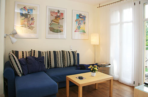 2-Zimmer-Wohnung: 1 Wohnraum und 1 Schlafraum Etage: Obergeschoss Unterkunft mit Balkon DU/WC Küche Schlafzimmer Wohnzimmer Einrichtungen für Kinder Nichtraucher-Zimmer Besteck, Geschirr Bettwäsche Fernseher im Zimmer Handtücher Kaffeemaschine Kochgeschirr Kühlschrank Radio Schlafcouch Sitzecke Wäschetrockner Waschmaschine
