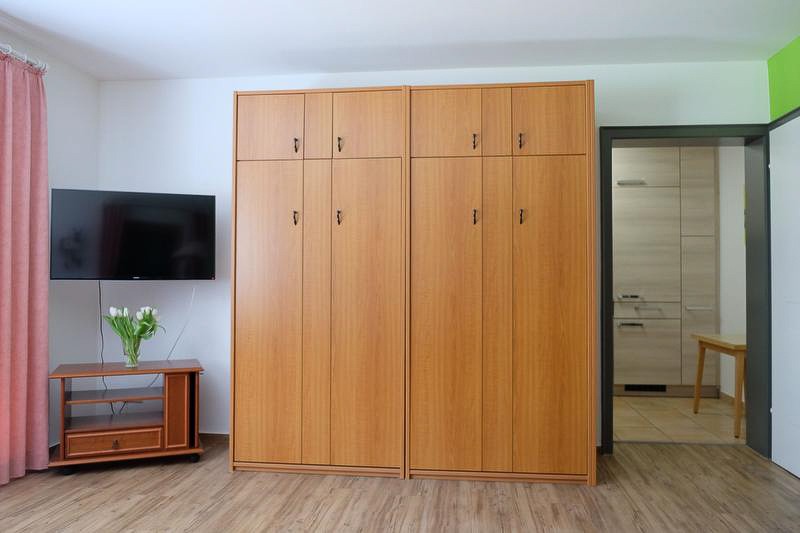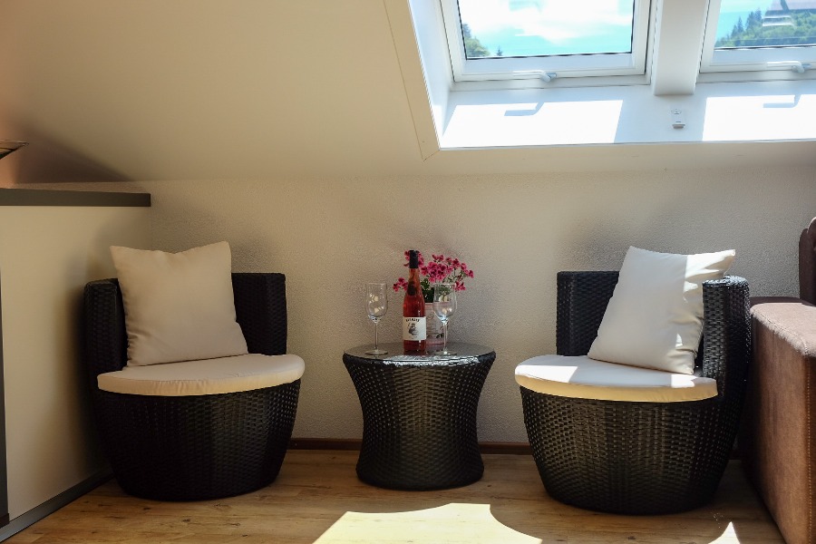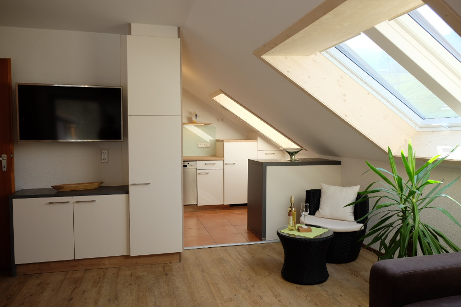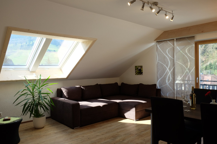 2-Zimmer-Wohnung: 1 Wohnraum und 1 Schlafraum Etage: Dachgeschoss Unterkunft mit Balkon DU/WC Schlafzimmer Wohnküche Einrichtungen für Kinder Babybett Kinderhochstuhl Nichtraucher-Zimmer Backofen Besteck, Geschirr Bettwäsche Elektroherd Fernseher im Zimmer Geschirrhandtücher Geschirrspülmaschine Haartrockner Handtücher Kaffeemaschine Kochgeschirr Kühlschrank mit Gefrierfach Radio Telefon Wäschetrockner Waschmaschine