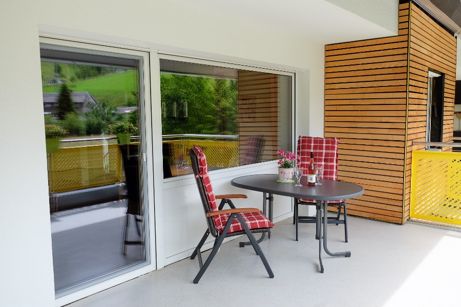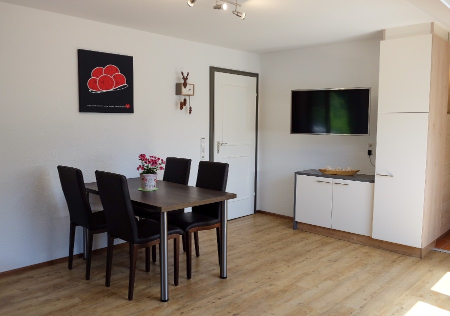 2-Zimmer-Wohnung: 1 Wohnraum und 1 Schlafraum Etage: Obergeschoss Unterkunft mit Balkon DU/WC Schlafzimmer Wohnküche Einrichtungen für Kinder Babybett Kinderhochstuhl Nichtraucher-Zimmer Backofen Besteck, Geschirr Bettwäsche Elektroherd Fernseher im Zimmer Geschirrhandtücher Geschirrspülmaschine Haartrockner Handtücher Kaffeemaschine Kochgeschirr Kühlschrank mit Gefrierfach Radio Telefon Wäschetrockner Waschmaschine