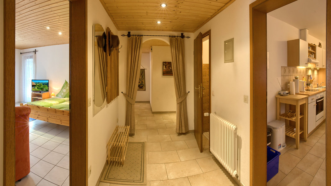 1-Zimmer-Wohnung: Wohnraum und Schlafraum in einem Etage: Obergeschoss Unterkunft mit Balkon DU/WC Fußboden Stein/Fließen Küche: Einbauküche Wohnschlafzimmer Einrichtungen für Kinder Babybett Allergikerfreundlich (bedingt) Nichtraucher-Zimmer Besteck, Geschirr Bettwäsche Bügeleisen Doppelbett Dunstabzugshaube Eierkocher Fernseher im Zimmer Geschirrhandtücher Geschirrspülmaschine Handtücher Internet Kaffeemaschine Kleiderschrank Kochgeschirr Kühlschrank mit Gefrierfach Mixer Nachttisch Radio Radiowecker Rauchmelder Tischwäsche Toaster Wasserkocher