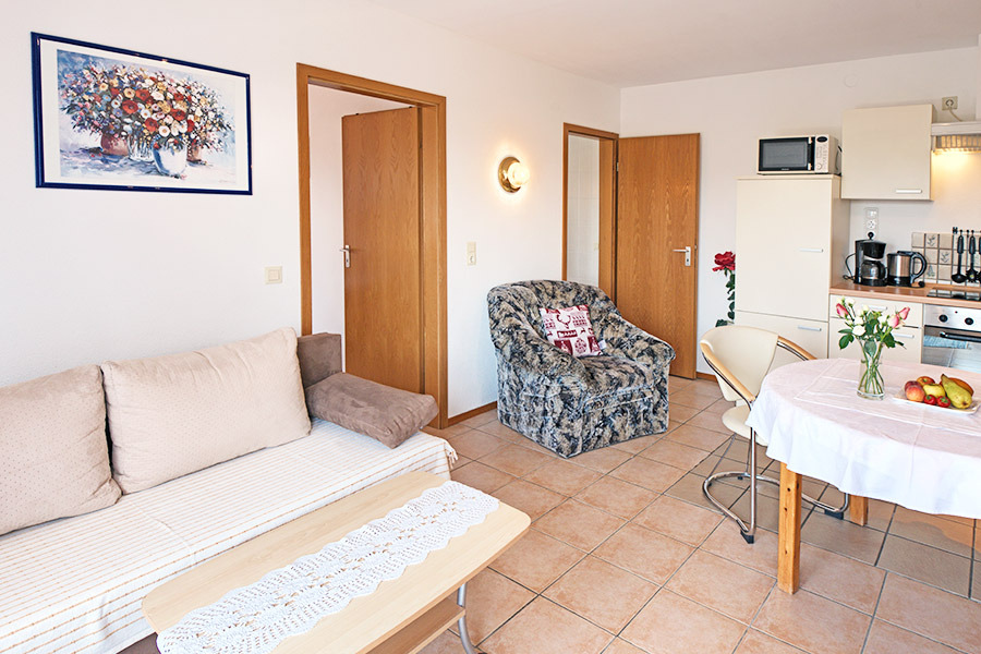 2-Zimmer-Wohnung: 1 Wohnraum und 1 Schlafraum Unterkunft mit Balkon DU/WC Nichtraucher-Zimmer Bettwäsche Fernseher im Zimmer Handtücher Telefon