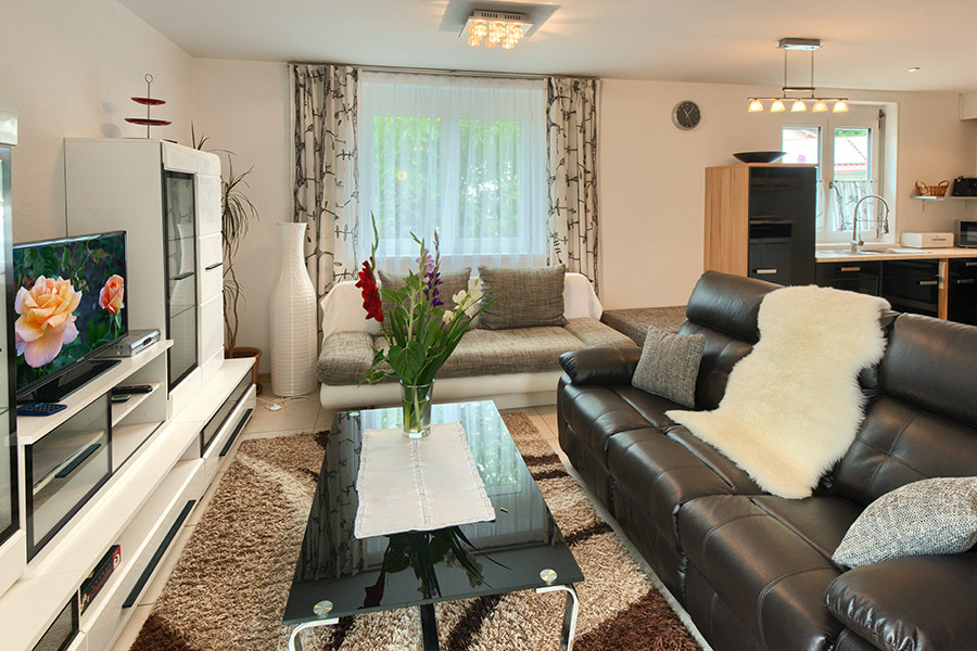 Komfortable Ferienwohnungen nur wenige Gehminuten zum Stadtzentrum. Jede Wohnung mit Balkon und separatem Eingang. Große Liegewiese im Garten. Herzlich Willkommen im Haus God.