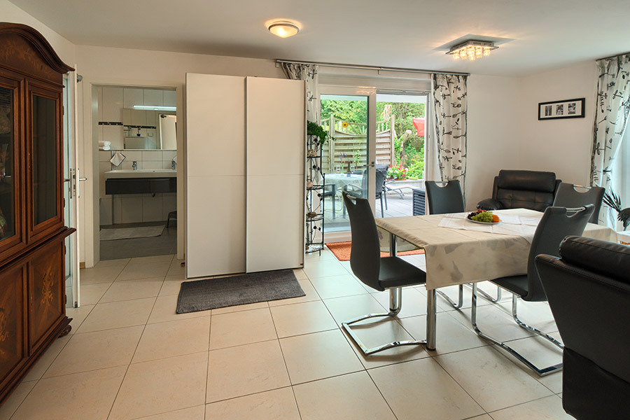 Unterkunft mit Terrasse DU/WC Küche Wohn- und Esszimmer mit Küche Internet
