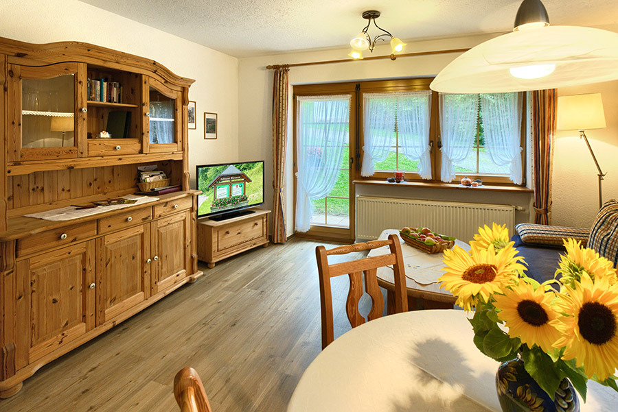 2-Zimmer-Wohnung: 1 Wohnraum und 1 Schlafraum Südterrasse DU/WC Küche Babybett Kinderbett Nichtraucher-Zimmer Backofen Bettwäsche Fernseher im Zimmer Geschirrspülmaschine Handtücher Kaffeemaschine Kühlschrank Mikrowelle Radio Telefon