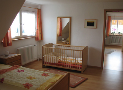 Unsere gemütlich eingerichtete Ferienwohnung für 2 bis 4 Peronen und unser Garten bieten Ihnen mit ihrem herrlichem Weitblick Ruhe und Entspannung. Ideal auch für Familien mit Kindern.
