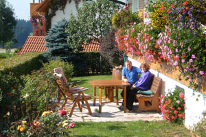 Unsere gemütlich eingerichtete Ferienwohnung für 2 bis 4 Peronen und unser Garten bieten Ihnen mit ihrem herrlichem Weitblick Ruhe und Entspannung. Ideal auch für Familien mit Kindern.