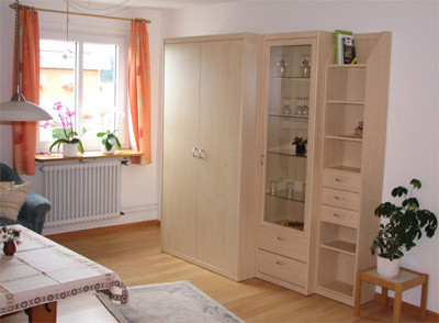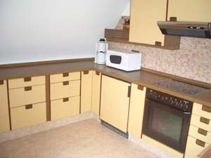 3-Zimmer-Wohnung: 1 Wohnraum und 2 Schlafräume Etage: Obergeschoss BD/WC Küche Schlafzimmer Wohn- und Esszimmer Wohnzimmer Einrichtungen für Kinder Nichtraucher-Zimmer Backofen Besteck, Geschirr Bettwäsche Eierkocher Elektroherd Fernseher im Zimmer Geschirrhandtücher Geschirrspülmaschine Handtücher Kaffeemaschine Kleiderschrank Kochgeschirr Kühlschrank Mikrowelle Schlafcouch Sitzecke