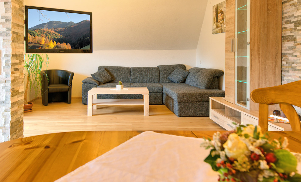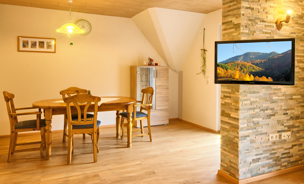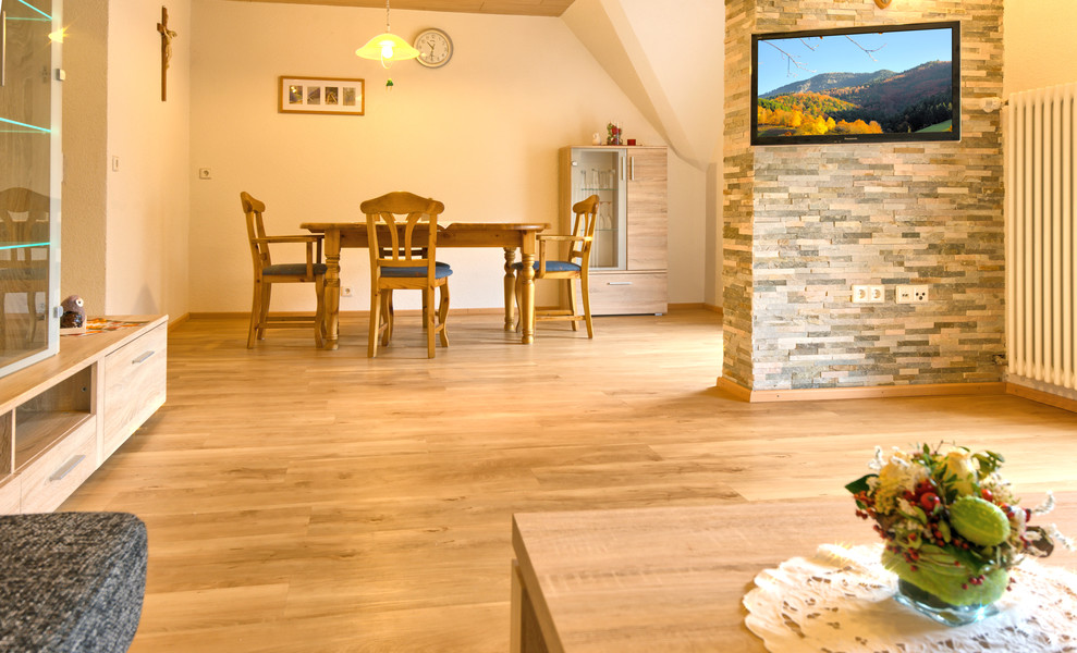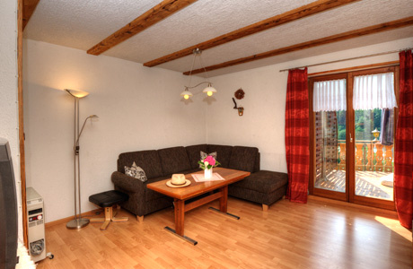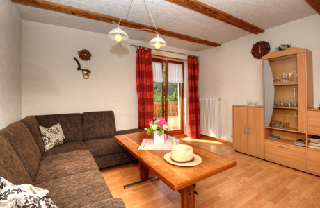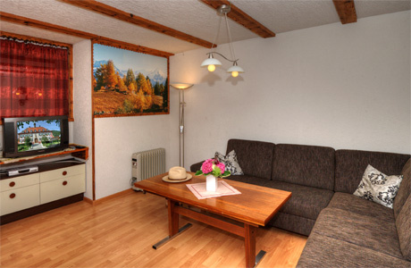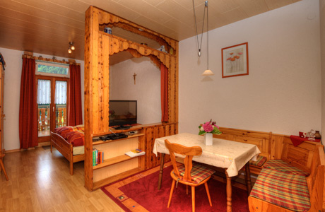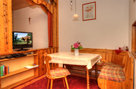 Etage: Obergeschoss Unterkunft mit Balkon DU/WC Wohnküche Einrichtungen für Kinder Babybett Nichtraucher-Zimmer Bettwäsche Eierkocher Fernseher im Zimmer Geschirrspülmaschine Handtücher Kachelofen