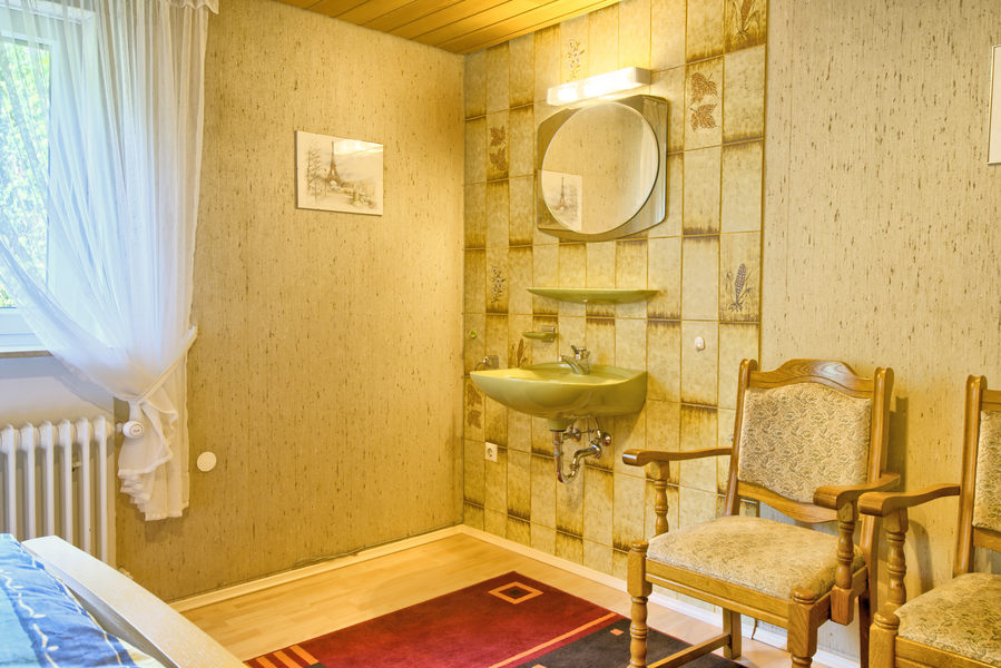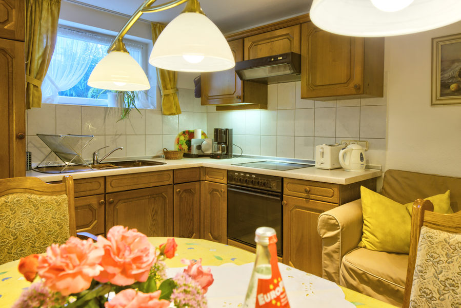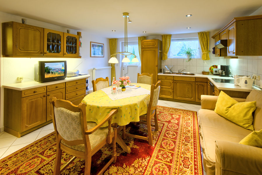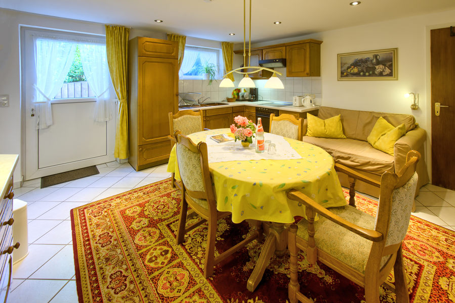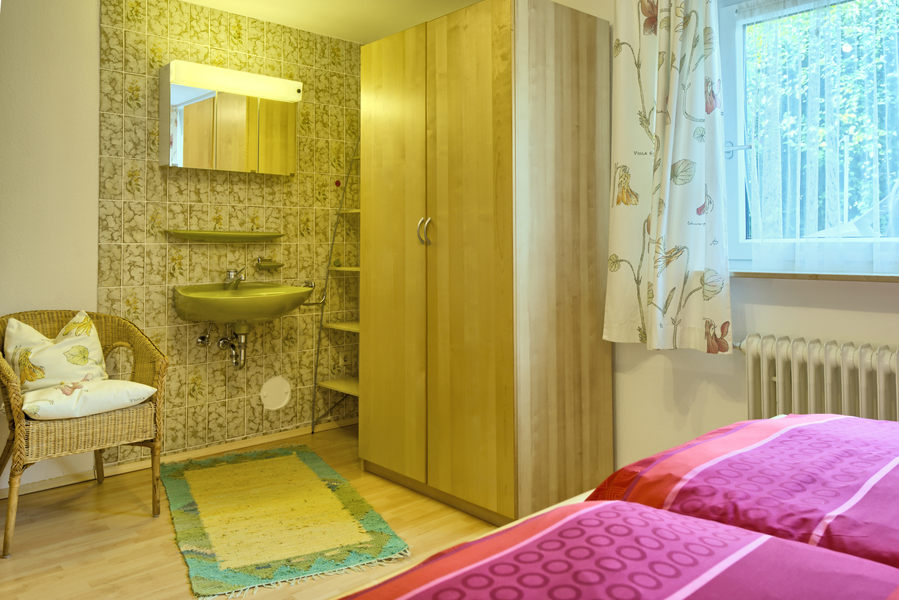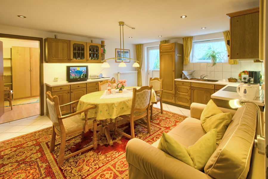 2-Zimmer-Wohnung: 1 Wohnraum und 1 Schlafraum Etage: Untergeschoss Souterrainwohnung Unterkunft mit Terrasse DU/WC Küche Küche: Einbauküche Schlafzimmer Wohnzimmer Kinderbett Nichtraucher-Zimmer Backofen Besteck, Geschirr Bettwäsche Doppelbett Dunstabzugshaube Elektroherd Fernseher im Zimmer Handtücher Herd mit Kochfeld Kaffeemaschine Kochgeschirr Kühlschrank mit Gefrierfach Tischwäsche Toaster Waschmaschine Wasserkocher