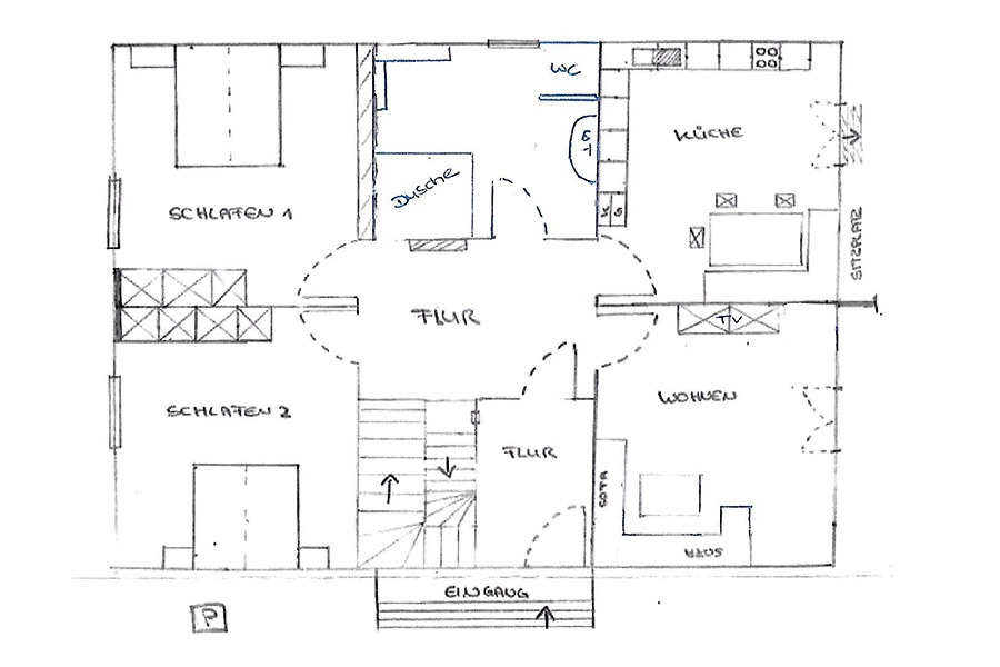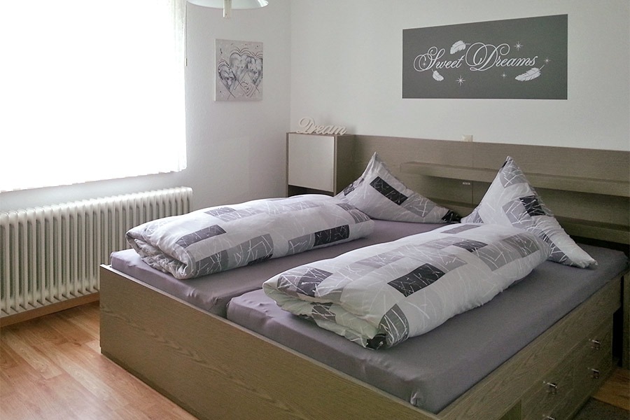 3-Zimmer-Wohnung: 1 Wohnraum und 2 Schlafräume Etage: Erdgeschoss Südterrasse DU/WC Fußboden Laminat Küche Küche: Einbauküche Wohnzimmer Kinderbett Nichtraucher-Zimmer Backofen Besteck, Geschirr Bettwäsche Doppelbett DVD-Player Eierkocher Elektroherd Fernseher im Zimmer Geschirrhandtücher Geschirrspülmaschine Haartrockner Handtücher Internet Kaffeemaschine Kleiderschrank Kochgeschirr Kühlschrank mit Gefrierfach Mikrowelle Radiowecker Rauchmelder Sitzecke Telefon Tischwäsche Toaster Wasserkocher