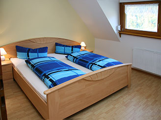 Die Ferienwohnung ist 50 m² groß und eingerichtet für bis zu 4 Personen. Sie besteht aus einem Schlafzimmer, Wohnzimmer, einer separaten Küche, einem Bad sowie einer zusätzlichen Schlafmöglichkeit. Die Ferienwohnung ist mit Dusche, WC, Küche mit Backofen, Radio und SAT-TV ausgestattet.