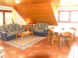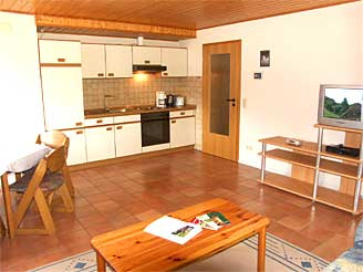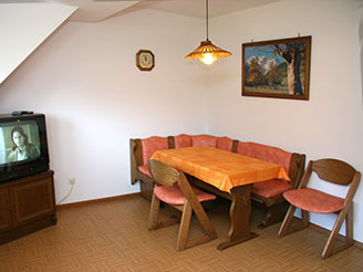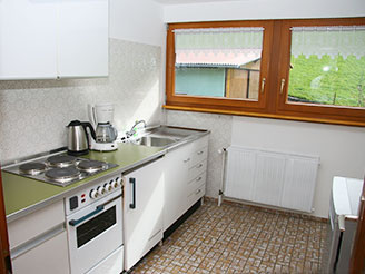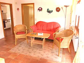 Die Ferienwohnung ist 50 m² groß und eingerichtet für bis zu 4 Personen. Sie besteht aus einem Schlafzimmer, Wohnzimmer, einer separaten Küche, einem Bad sowie einer zusätzlichen Schlafmöglichkeit. Die Ferienwohnung ist mit Dusche, WC, Küche mit Backofen, Radio und SAT-TV ausgestattet.