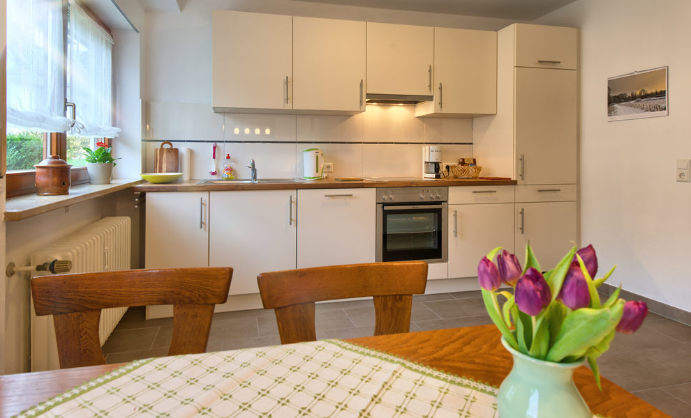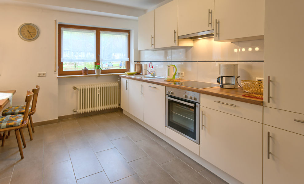 1-Zimmer-Wohnung: Wohnraum und Schlafraum in einem Etage: Erdgeschoss DU/WC Küche Küchenzeile Wohnschlafzimmer Nichtraucher-Zimmer Bettwäsche Fernseher im Zimmer Handtücher Kaffeemaschine Sitzecke Teekocher Waschmaschine Wasserkocher