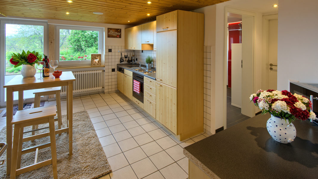 3-Zimmer-Wohnung: 1 Wohnraum und 2 Schlafräume Etage: Erdgeschoss Unterkunft mit Terrasse DU/WC Fußboden Holz/Kork Küche: Einbauküche Schlafzimmer: 2 Babybett Kinderbett Nichtraucher-Zimmer Backofen Besteck, Geschirr Bettwäsche Fernseher im Zimmer Fußbodenheizung Geschirrspülmaschine Haartrockner Handtücher Kaffeemaschine Kühlschrank Mikrowelle Radio Rauchmelder Sitzecke Teekocher Toaster Wasserkocher Zustellbett