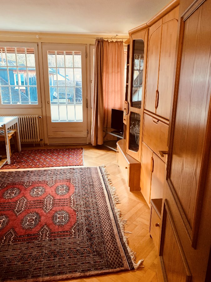 2-Zimmer-Wohnung: 1 Wohnraum und 1 Schlafraum Unterkunft mit Balkon BD/WC DU/WC Schlafzimmer Babybett Kinderbett Nichtraucher-Zimmer Bademantel Badschrank Bettwäsche Doppelbett Fernseher im Zimmer Haartrockner Handtücher Internet Highspeed Internet Kaffeemaschine Kleiderschrank Schlafcouch Schreibtisch Zustellbett