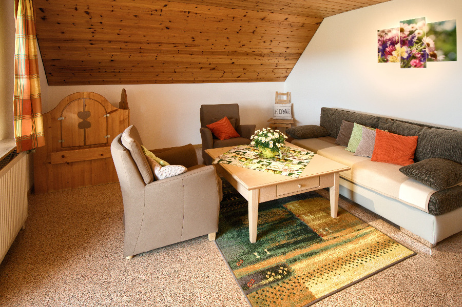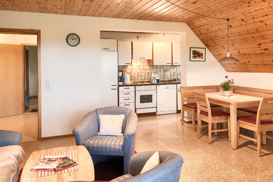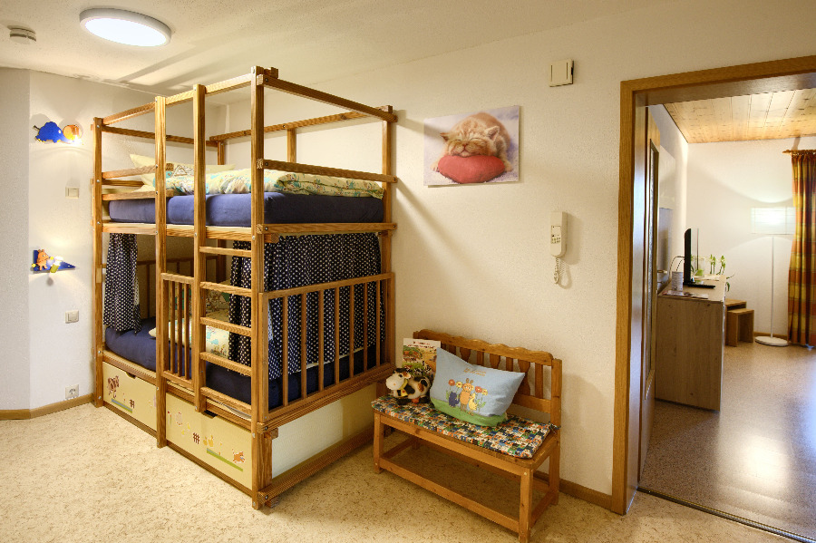 2-Zimmer-Wohnung: 1 Wohnraum und 1 Schlafraum Etage: Obergeschoss BD/DU/WC Küche Schlafzimmer Wohnschlafzimmer Einrichtungen für Kinder Etagenbett Kinderbett Kinderhochstuhl Nichtraucher-Zimmer Besteck, Geschirr Bettwäsche Doppelbett Elektroherd Fernseher im Zimmer Geschirrhandtücher Geschirrspülmaschine Handtücher Herd mit Kochfeld Kochgeschirr Kühlschrank Sitzecke Tischwäsche Waschmaschine Wasserkocher