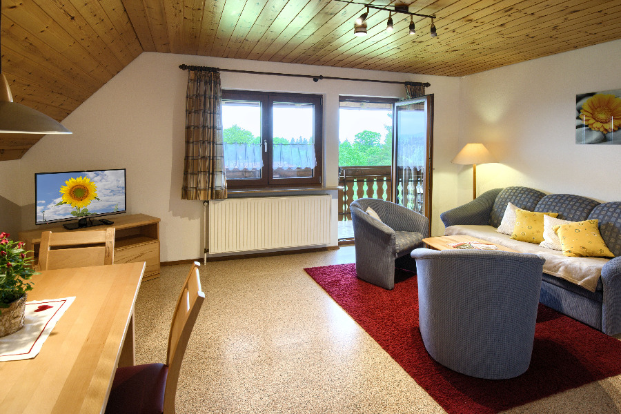 2-Zimmer-Wohnung: 1 Wohnraum und 1 Schlafraum Etage: Obergeschoss Unterkunft mit Balkon DU/WC Küche Schlafzimmer Wohnschlafzimmer Einrichtungen für Kinder Kinderbett Kinderhochstuhl Nichtraucher-Zimmer Besteck, Geschirr Bettwäsche Doppelbett Einzelbett Elektroherd Fernseher im Zimmer Geschirrhandtücher Geschirrspülmaschine Handtücher Herd mit Kochfeld Kochgeschirr Kühlschrank Sitzecke Tischwäsche Waschmaschine Wasserkocher