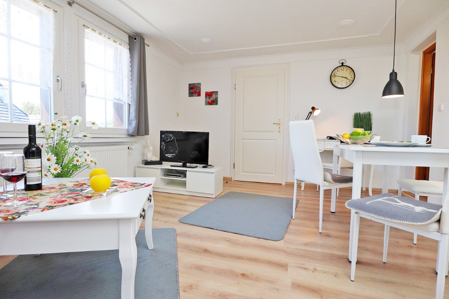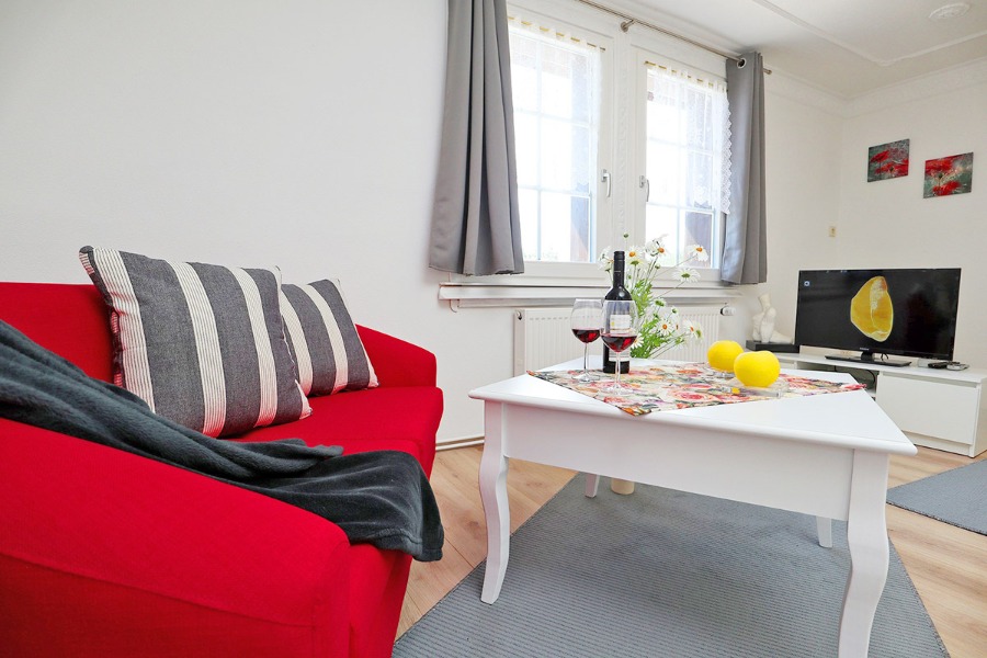 2-Zimmer-Wohnung: 1 Wohnraum und 1 Schlafraum Unterkunft mit Balkon oder Terrasse BD/DU/WC DU/WC Fußboden Laminat Küchenzeile Schlafzimmer Verbindungstür Wohn- und Esszimmer mit Küche Nichtraucher-Zimmer Besteck, Geschirr Bettwäsche Bügelbrett Bügeleisen Doppelbett Dunstabzugshaube Elektroherd Fernsehanschluss vorhanden Fernseher im Zimmer Fernsehsessel Geschirrhandtücher Haartrockner Handtücher Herd mit Kochfeld Internet Kaffeemaschine Kleiderschrank Kochgeschirr Kühlschrank Mikrowelle Nachttisch PayTV im Zimmer Radio Rauchmelder Safe Schreibtisch Sitzecke Staubsauger Tischwäsche Toaster Wasserkocher