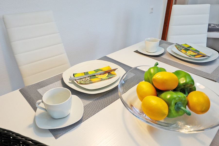 2-Zimmer-Wohnung: 1 Wohnraum und 1 Schlafraum Etage: Obergeschoss Unterkunft mit Balkon oder Terrasse DU/WC Fußboden Laminat Fußboden Stein/Fließen Küche: Einbauküche Schlafzimmer Verbindungstür Wohn- und Esszimmer Nichtraucher-Zimmer Allesschneider elektrisch Besteck, Geschirr Bettwäsche Brotschneidemaschine Bügelbrett Bügeleisen Doppelbett Dunstabzugshaube Eierkocher Elektroherd Fernsehanschluss vorhanden Fernseher im Zimmer Fernsehsessel Geschirrhandtücher Haartrockner Handmixer Handtücher Herd mit Kochfeld Internet Kaffeemaschine Kleiderschrank Kochgeschirr Kühlschrank mit Gefrierfach Mikrowelle Nachttisch Radiowecker Rauchmelder Safe Schreibtisch Sitzecke Staubsauger Tischwäsche Toaster Wasserkocher