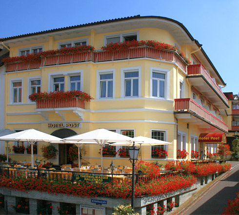 Wohlige Behaglichkeit: Suchen Sie herzliche und familiäre Gastfreundlichkeit? Besonders aufmerksam und liebevoll betreut durch die Gast- geberfamilie Ulrike und Christian Baltes persönlich, genießen Sie eingebettet in den verkehrs- beruhigten Bereich Badenweilers, das Privathotel Post. Ohne mühsame Steigungen finden Sie uns direkt gegenüber der Wellness-Cassiopeia-Therme mit Saunalandschaft und dem Kurpark mit einzigartigen Mammutbäumen. Kostenfreie Parkplätze am Haus. Zwei Aufzüge im Haus, einer bis in die Tiefgarage. Gönnen Sie sich einen angenehmen Aufenthalt in unserem familiär geführten Privathotel Post an der Therme.