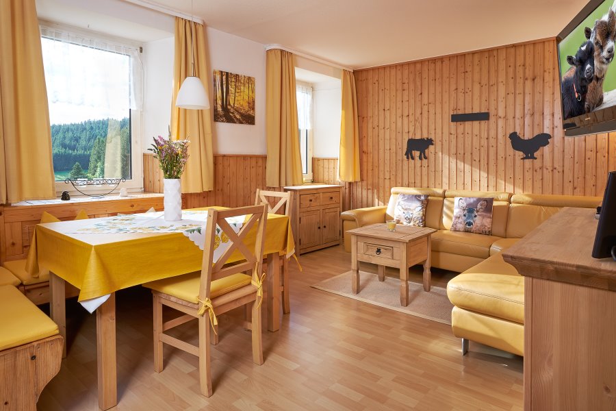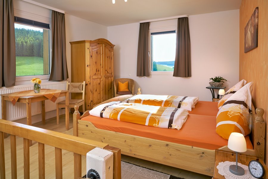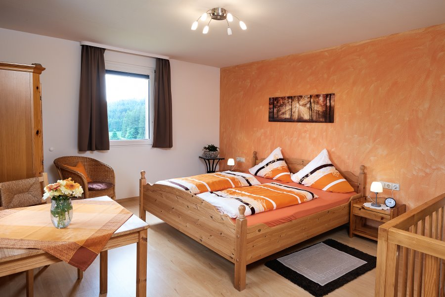 Gepflegter Schwarzwald-Bauernhof in Breitnau bei Hinterzarten in 960 Meter Höhe in sonniger Einzellage. Ein wahres Paradies für Ruhesuchende, Wanderer und Familien. Der Biobetrieb mit Mutterkühen, Ziegen, Enten, Katzen und dem Hofhund Trixie ist eingebettet in Wiesen, Wälder mit blühenden Biotopen und kleinen Bächen. Sie wohnen in unserer gemütlichen, gut ausgestatteten 3-Sterne Ferienwohnung für 1-4 Personen ( Zustellbett für 5. Person vorhanden), Ein Ort zum Wohlfühlen und zum Entspannen in herrlicher Umgebung. Schlafzimmer sind Durchgangszimmer, OG über etwas steile Treppe zugänglich. Kein Handyempfang, Bis 2 Hunde auf Nachfrage erlaubt, 7€ / Hund und Tag. Leinenpflicht bei Jagdtrieb und Katzenunverträglichkeit. Nicht auf die Couch/Bank/Bett.