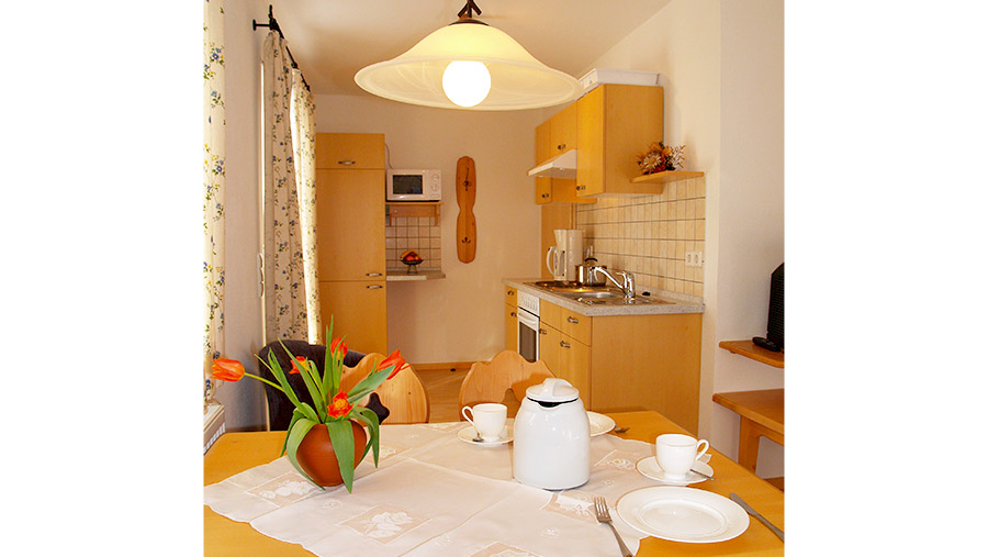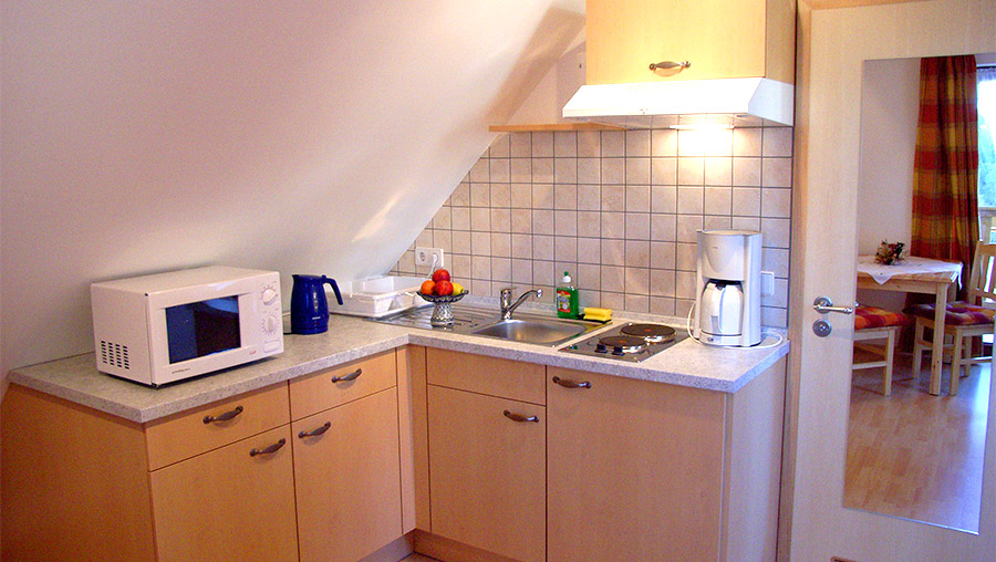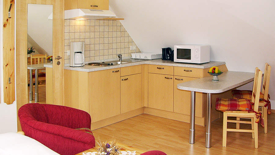 1-Zimmer-Wohnung: Wohnraum und Schlafraum in einem Unterkunft mit Balkon DU/WC Küche Einrichtungen für Kinder Kinderbett Kinderhochstuhl Nichtraucher-Zimmer Backofen Bettwäsche Doppelbettmasse1-breit: 1 Doppelbettmasse1-lang: 2,2 Einzelbettmasse1-breit: 2,0 Einzelbettmasse1-lang: 2,2 Fernseher im Zimmer Handtücher Herd mit Kochfeld Internet Kaffeemaschine Kühlschrank mit Gefrierfach Mikrowelle Telefon Toaster