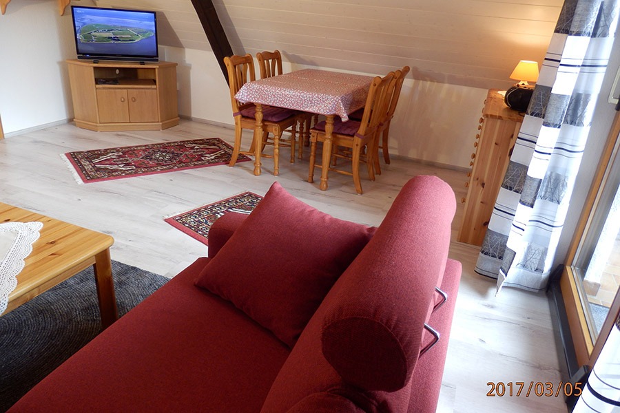 2-Zimmer-Wohnung: 1 Wohnraum und 1 Schlafraum Etage: Dachgeschoss Unterkunft mit Balkon BD/DU/WC Küche Schlafzimmer Wohn- und Esszimmer Einrichtungen für Kinder Kinderbett Kinderhochstuhl Bettwäsche Doppelbett Fernseher im Zimmer Geschirrspülmaschine Wäschetrockner Waschmaschine
