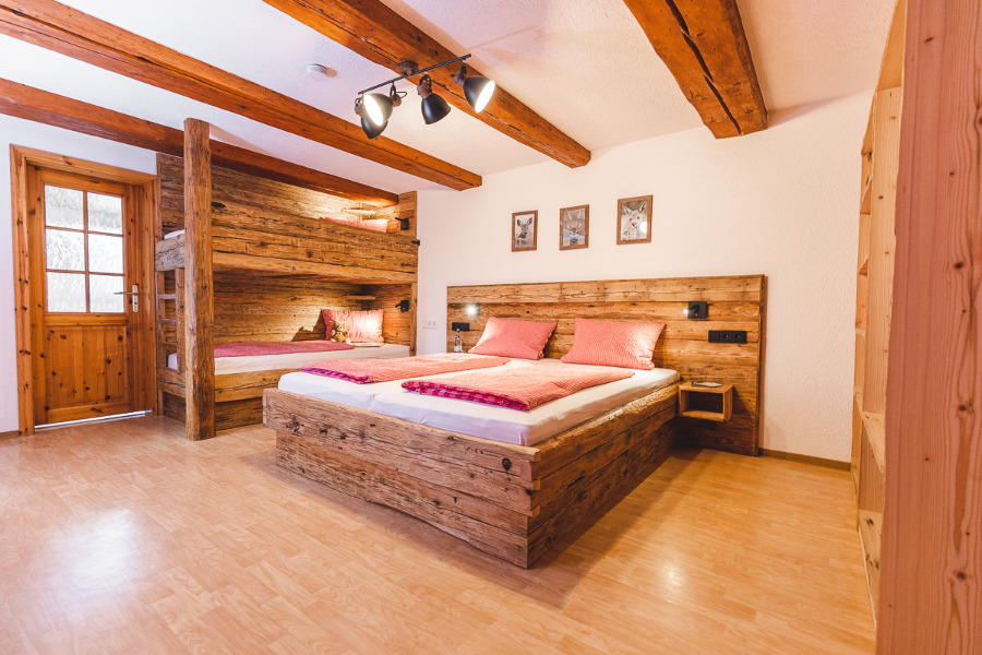 Familienfreundlicher Biobauernhof im malerischen Schwarzwaldtal, dem Jostal, 5km vom Titisee entfernt. Hier zeigt sich der Schwarzwald besonders reizvoll in einem für unsere Landschaft typischen Hochtal, umgeben von Wiesen, Seen und Wäldern. Leben und arbeiten in und mit der Natur ist unsere Aufgabe - ursprünglich, herzlich, familär und nachhaltig - das Bauernhoferlebnis im Schwarzwald, mit naturnahen Glücksmomenten, für jung und Junggebliebene! Wir sind Partner-Betrieb/ Vermieter der Hochschwarzwald-Card! Sie erhalten mit der Karte zusätzlich zu unseren eigenen Leistungen zahlreiche kostenlose Leistungen, bis zu 70 Urlaubserlebnisse, für noch mehr Urlaubsspaß. In unserem traditionsreichen Bauernhof mit Gästehaus bieten wir Ihnen ein behagliches Ferien-Zuhause mit komfortablen Ferienwohnungen - Wäsche vorhanden! Auf Wunsch bieten wir Ihnen: Brötchenservice, sowie Wäscheservice, Getränkeservice! Direkt am Hof befinden sich: Spielplatz, Trampolin, Kinderfahrzeuge, Liegewiese und Grill. 2 Kinderspielzimmer, Kinderfahrzeuge und kompletter Kleinkind- und Babybedarf ist vorhanden. Ponyreiten und Traktorfahrt zum Wunderbaum (Kadelaberfichte).Die Hofkapelle lädt zu Gebet und Meditation ein. Zertifizierter Bio-Betrieb mit Mutterkuhhaltung, Forstwirtschaft mit Eigenjagd, Energieproduktion durch eine Hackschnitzelheiz-und Photovoltaikanlage, Wasseraufbereitung durch vollbiologische Klärung im Pflanzenbett, eigenes Quellwasser. Gaststätten in unmittelbarer Nähe und Einkaufsmöglichkeiten 3 km entfernt. Langlaufloipe direkt am Hof, Skilifte in ca.2 km Entfernung. Eigener Hofrundwanderweg 3,5km